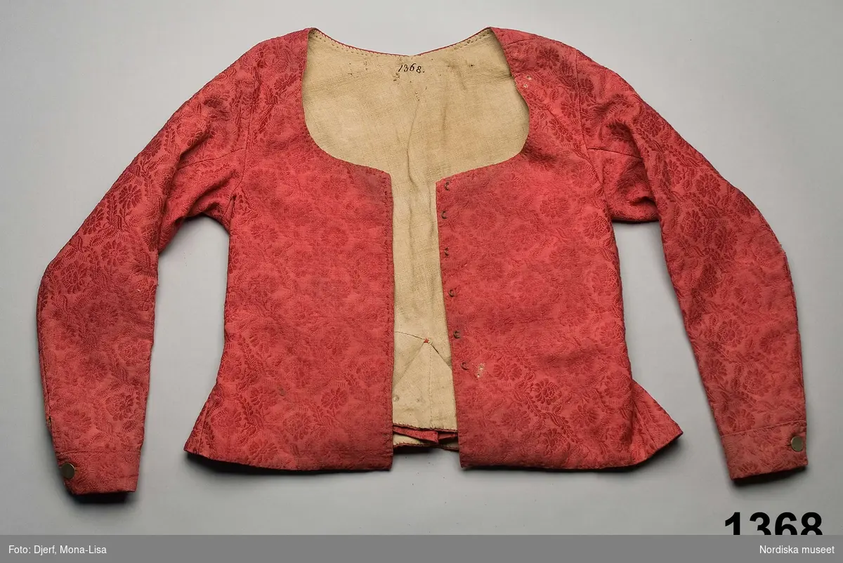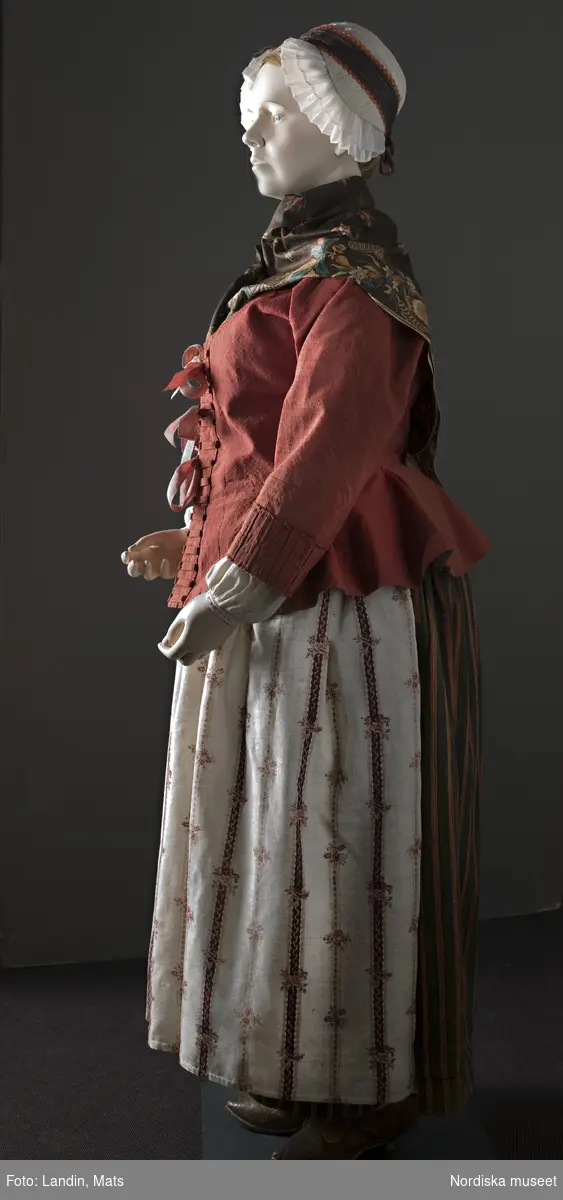 The design of the pattern is very similar to the red fabrics used for a jacket and a "livstycke"...